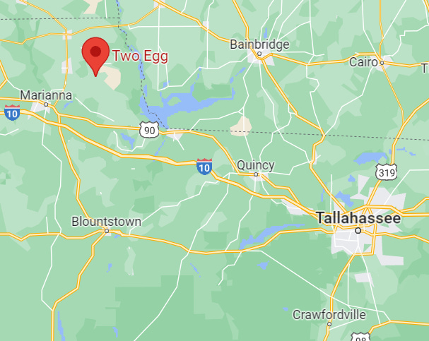 Two Egg is a crossroads community in Northwest Florida not far from the Alabama and Georgia state lines. Actress Faye Dunaway spent her childhood years just north of Two Egg in the community of Bascom.